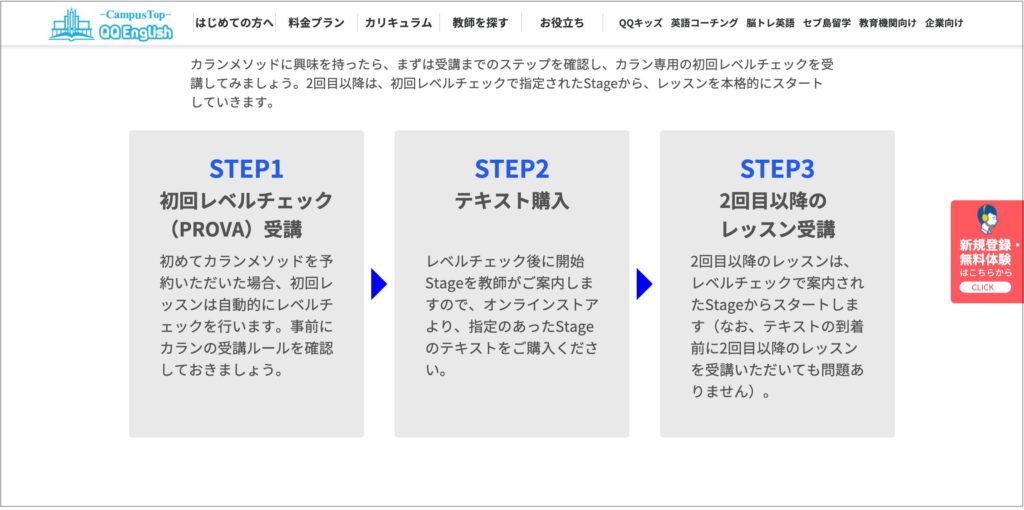 まずは、QQEnglishの無料体験を受けてあなたがどのステージからスタートなのか確かめましょう。
