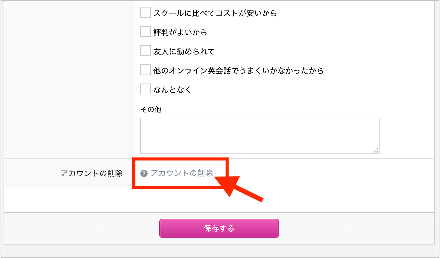 もう利用しない」「アカウント自体を残したくない」と思ったら、マイレッスンページから「退会(アカウント削除)」の手続きをします。